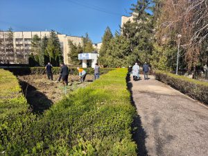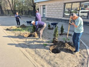 В тёплый весенний день сотрудники провели комплексную уборку территории: вывезли мусор, очистили пешеходные зоны, побелили деревья и привели в порядок зелёные насаждения. Также были подготовлены участки для высадки цветов и проведены работы по благоустройству территории.