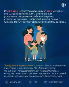 При этом более 3,5 миллионов человек пока остаются вне системы ОСМС. Среди них примерно 1 миллион — граждане с критически низким уровнем социального благополучия (категории D и E по Цифровой карте семьи), которые объективно не имеют возможности оплачивать взносы самостоятельно.