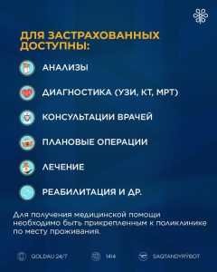 Помните: для получения полного объёма медицинской помощи по ОСМС необходимо быть прикреплённым к поликлинике по месту жительства.
