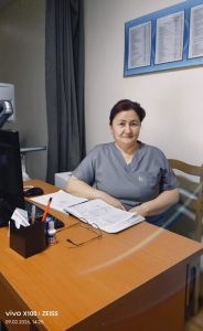 Алимжанова Акмарал Бейсебаевна — заведующая отделением, врач УЗД, магистр здравоохранения. Общий стаж — 18 лет, УЗД — 5 лет.